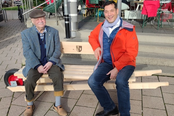 In Anlehnung an die landesweite Aktion des Landesseniorenrats Baden-Württemberg 2021 gegen die Einsamkeit in den Corona-Pandemiejahren steht Bürgermeister Markus Hollemann mit dem neuen, mobilen „Denzlinger Schwätzbänkle“ bei jedem Wetteram Freitag, 9. Dezember 2022, ab 9:30 Uhr, auf dem Denzlinger Wochenmarkt im Kohlerhof vor „Kaisers Gute Backstube“/SV SparkassenVersicherungsagentur SV Team Allgaier.