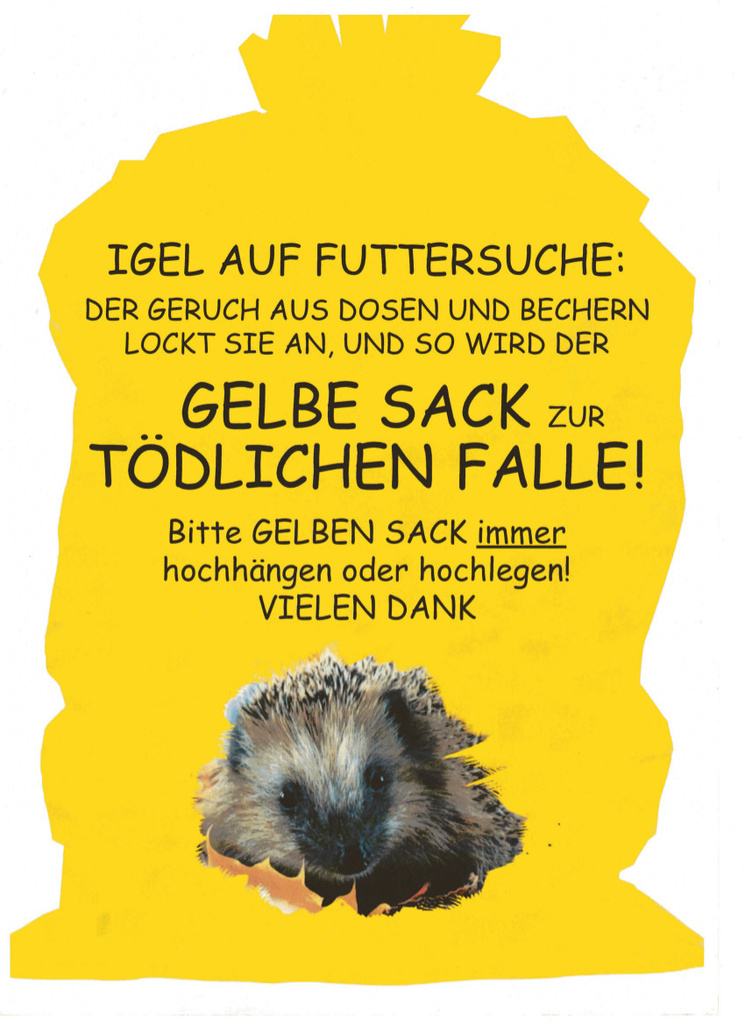 Mehr Informationen zum Igelschutz und zur Igelhilfe finden Sie unter dem nachfolgenden Link, in Facebook unter Igelnetzwerk Südbaden e.V. sowie in den Flyern "Igel in Not gefunden - was tun?" sowie "Tödliche Gefahr Mähroboter".