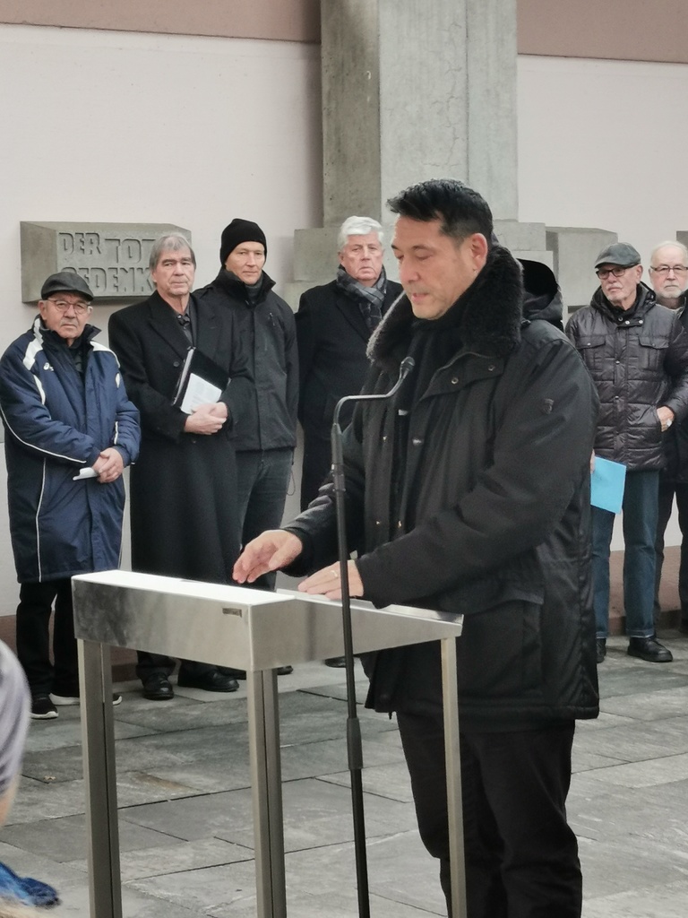 Petronella Rußer-Grüning, 1. Vorsitzende des Arbeitskreises Kultureller Vereine Denzlingen (AKVD), und Matthias Schubien, Vorsitzender des Sportarbeitskreises, verlasen die Namen der im vergangenen Jahr Verstorbenen Vereinsmitglieder. Nach einer Schweigeminute und gemeinsamem Gesang fand die Veranstaltung ihren Abschluss in einer gemeinsamen Kranzniederlegung.