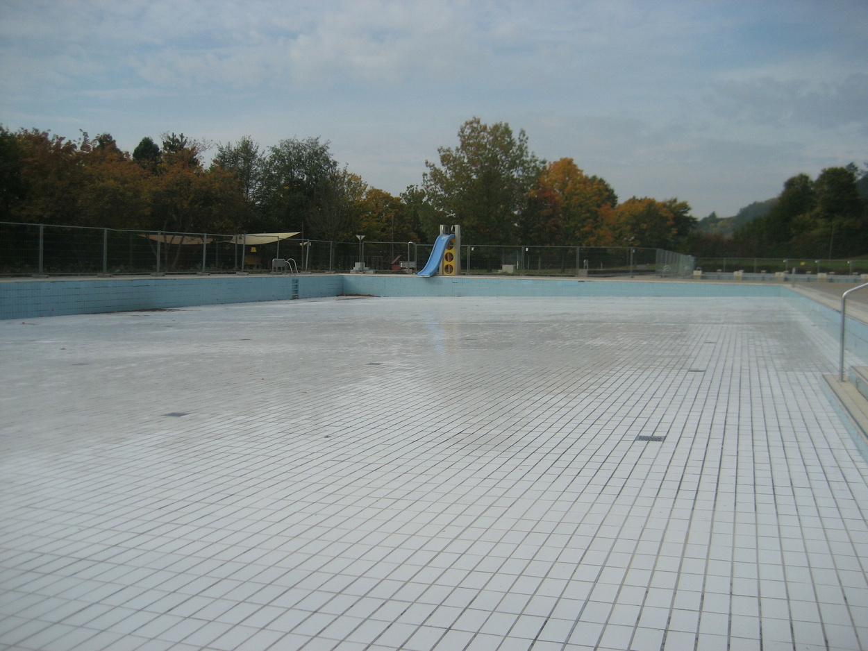 Bild 1: Blick auf das Nichtschwimmerbecken im Außenbereich des Sportbades zu Beginn der Sanierung im Jahr 2008 - Foto Gemeinde Denzlingen