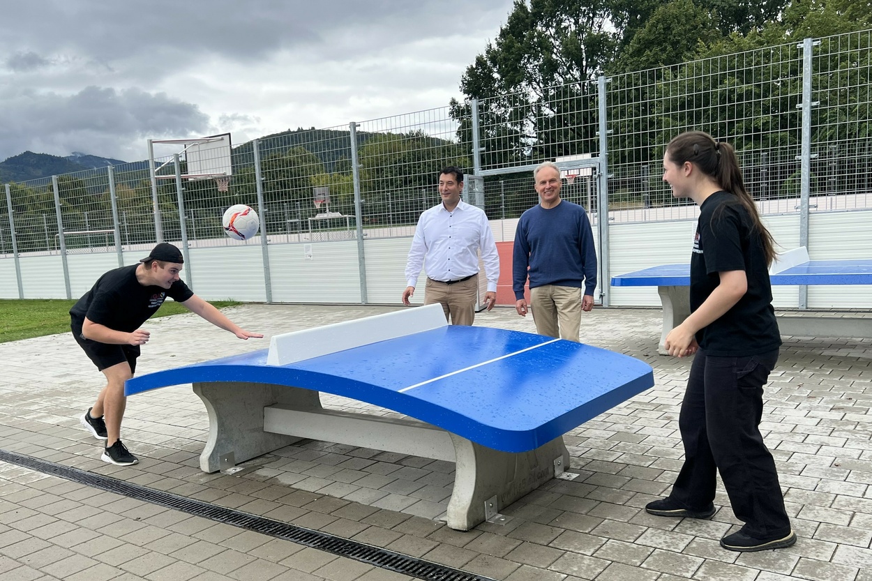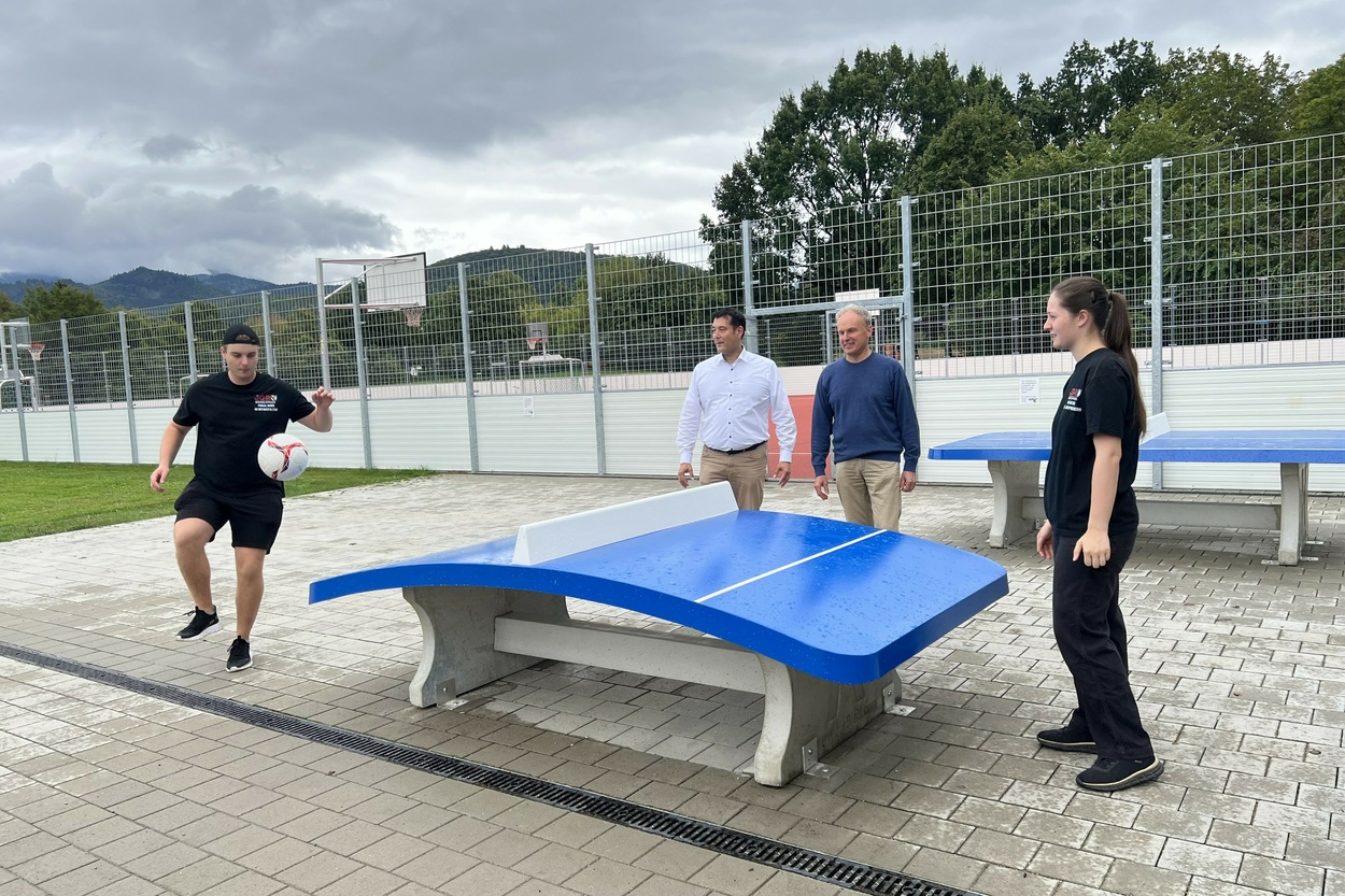 Ein neuer Trendsport hat Denzlingen erreicht! Beim kürzlich eröffneten Allwetter-Sportplatz im Stadtpark finden Ballbegeisterte neben einer klassischen Tischtennisplatte nun auch einen nagelneuen Teqball-Spieltisch. Besonders Denzlingens Jugendgemeinderat hatte sich für die Anschaffung eingesetzt und damit die Wünsche der jungen Generation berücksichtigt.„Wir freuen uns sehr, dass unser Wunsch nach einer neuen Tischtennisplatte und einem Teqball-Spieltisch in Erfüllung gegangen ist. Teqball liegt voll im Trend und ergänzt den überaus beliebten „Käfig 2.0“ perfekt“, sagt Lara Eckerle, stellvertretende Vorsitzende des Jugendgemeinderats (JGR). „Schön ist vor allem auch der neu entstandene Begegnungsraum“, ergänzt Pascal Gence, Leiter der Abteilung Ortsgestaltung des JGR. „Jugendliche entdecken zusammen diese spannende Sportart. Das stärkt Zusammenhalt und Gemeinschaft.“