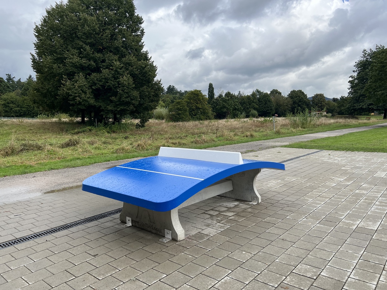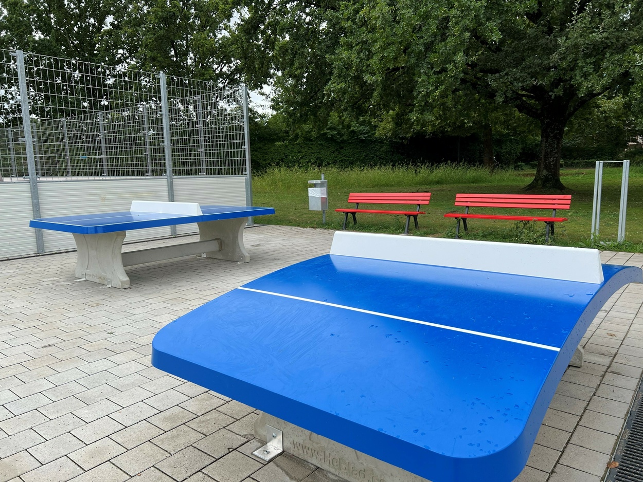 Wer das klassische Spiel mit Schläger und Ping Pong Ball bevorzugt, findet direkt neben dem gebogenen Tisch ab sofort eine bewährte Tischtennisplatte.