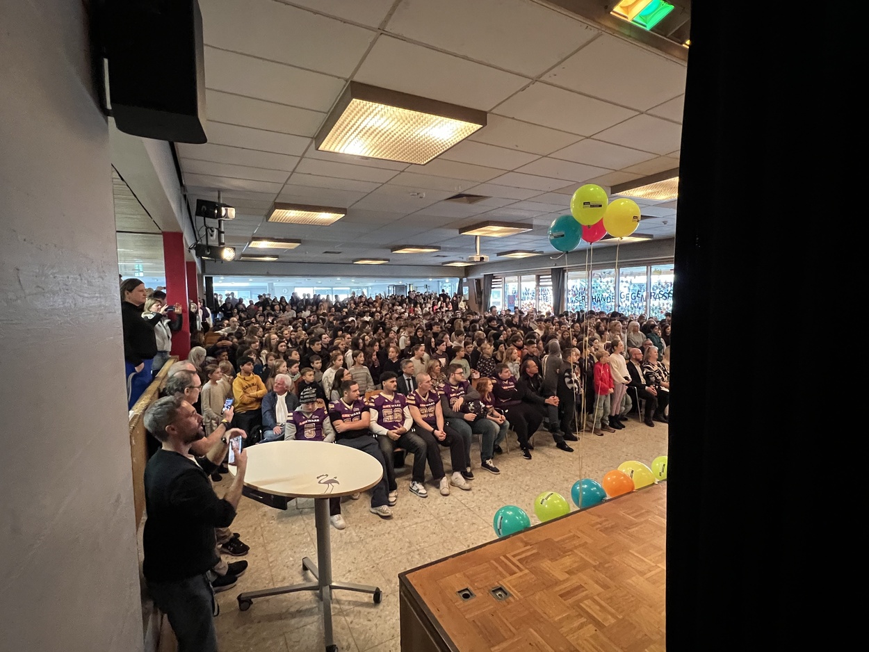 Am 22. November feierte die Ruth-Cohn-Schule ihren Beitritt zum Netzwerk "Schule ohne Rassismus – Schule mit Courage". Das Schild wurde unter Beifall an die Schulgemeinschaft übergeben. Mit dabei waren das Ruth-Cohn-Institut Dreyeckland und die Sacristians Freiburg.Mit dem Beitritt zum Netzwerk "Schule ohne Rassismus – Schule mit Courage" verpflichtet sich die Ruth-Cohn-Schule, kontinuierlich an Projekten und Aktionen zu arbeiten, die gegen jede Form von Diskriminierung und für ein friedliches und respektvolles Miteinander stehen. Die Schulgemeinschaft ist sich einig, dass dies kein einmaliges Projekt ist, sondern eine Haltung, die ihre Mitglieder täglich leben wollen.
