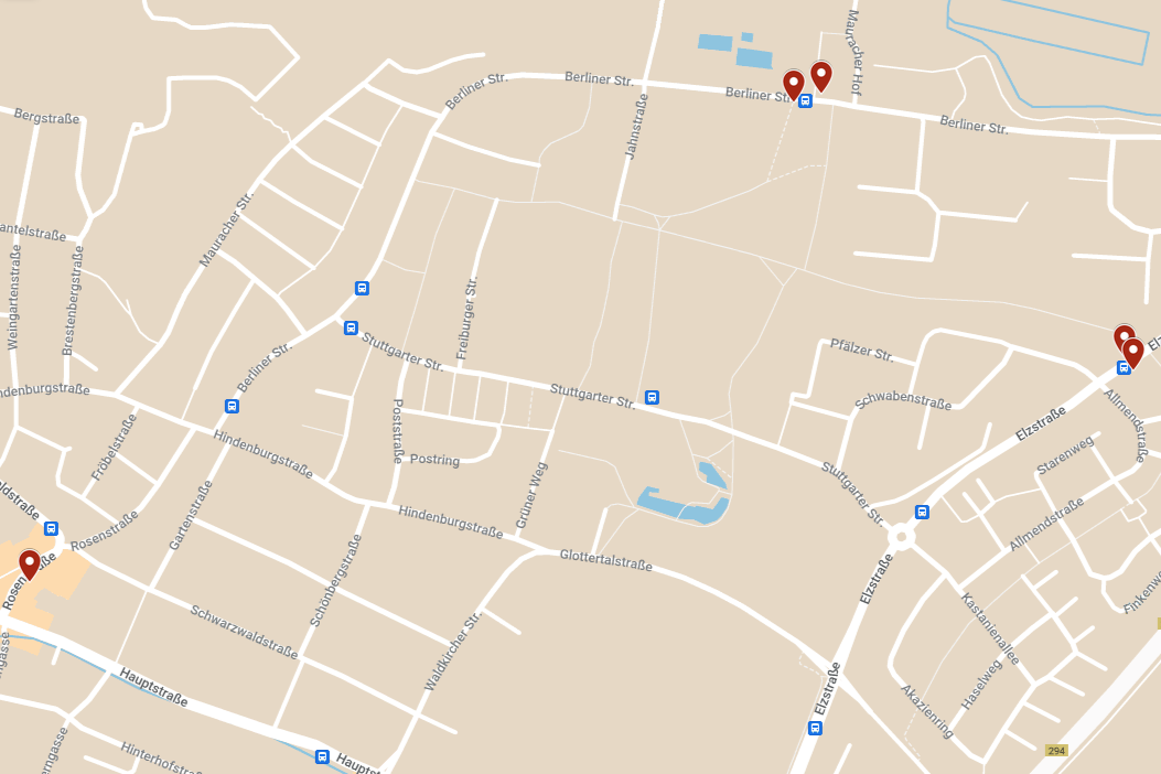 • Bushaltestellen ‚Kauftreff‘ (Elzstraße, beide Straßenseiten)
