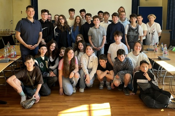 Vor kurzem hieß Bürgermeister Markus Hollemann eine Gruppe polnischer Schülerinnen und Schüler aus Konstancin-Jeziorna, der Partnerstadt Denzlingens, willkommen. Im Rahmen eines interkulturellen Austauschprogramms mit der Ruth-Cohn-Schule verbrachten sie eine Woche in Deutschland, um die deutsche Kultur, die Sprache und die Lebensweise hautnah mitzuerleben. Die 13 Jugendlichen wurden für diesen Zeitraum von den Familien ihrer Austauschpartner herzlichst aufgenommen.Bürgermeister Markus Hollemann empfing die Gruppe persönlich im Foyer des Rathauses. Er erklärte die Verwaltungsstrukturen in Baden-Württemberg und prüfte zugleich mit einigen Fragen das Wissen der Kinder über ihre Kommune.