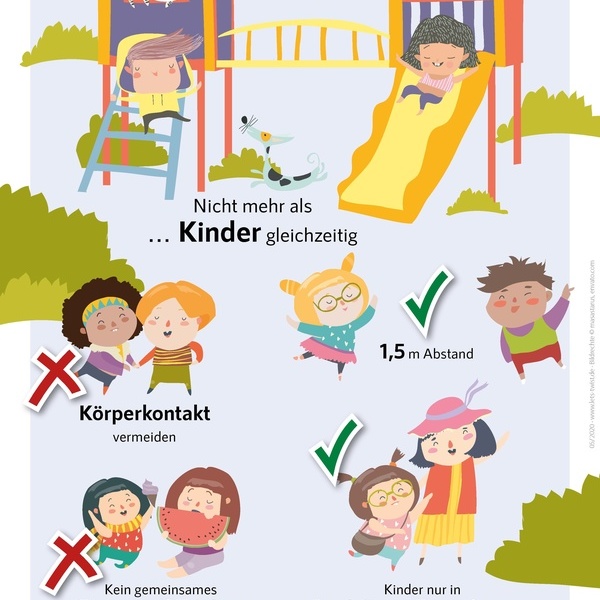 Bitte beachten Sie die die jeweilige Beschilderung auf den Spielplätzen. Nur durch einen verantwortungsvollen Umgang mit den beschlossenen Lockerungen können erneut steigende Infektionszahlen vermieden werden.