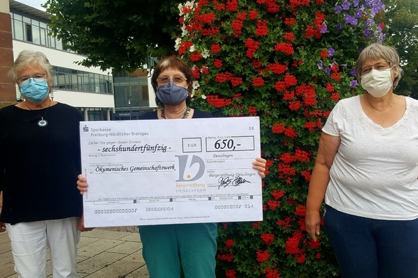 Scheck der Bürgerstiftung Denzlingen für das Ökumenische Gemeinschaftswerk