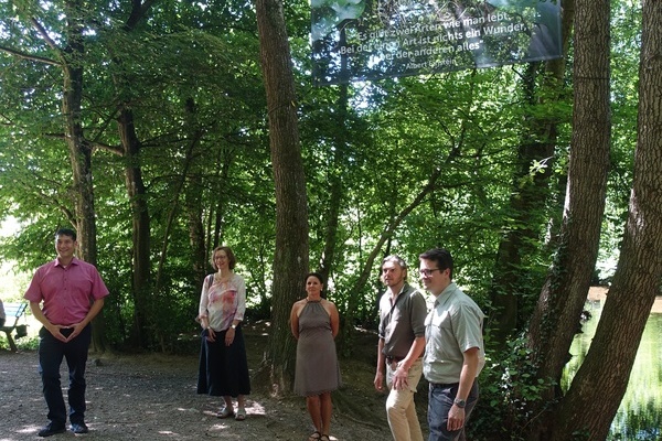 Unauffällig begleiten „Waldimpulse“ Spaziergänger durch den Denzlinger Wald. Neben Bürgermeister Markus Hollemann sowie dem stellvertretenden Leiter des Forstamts Emmendingen Dr. Frieder Hepperle und Revierförster Bernd Nold, erschienen auch Anne-Kathrin Uehlin-Mick als pädagogische Leiterin und Ilka Döring als zweite Vorsitzende des Trägervereins „Aktion Lebensraum“ zur Einweihung des ca. zwei Kilometer langen Rundweges. Der Rundweg ist mit dezent gestalteten Transparenten geschmückt, welche mit Inschriften namhafter Persönlichkeiten wie Joseph Cornell oder Albert Einstein bedruckt sind. Der Spaziergang durch den Wald soll zum Meditieren und Verweilen anregen, mehr noch, er soll ein Ort sein, an dem man viele Sorgen und Ängste abladen könnte. „Insbesondere die vergangenen Wochen und Monate während der Corona-Pandemie zeigten, wie wertvoll der Wald als Zufluchts- und Rückzugsort ist“, so Bürgermeister Hollemann – Durch den Rundweg, welcher in dieser Form voraussichtlich bis zum Ende der Sommerferien bestehen wird, soll dieser Wert noch weiter in das Bewusstsein der Mitbürgerinnen und Mitbürger gerückt werden, berichtet Dr. Frieder Hepperle. Der Rundweg beginnt am Waldspielplatz Einbollen und folgt dem Dachslöcher-, und dem Wiesenweg.