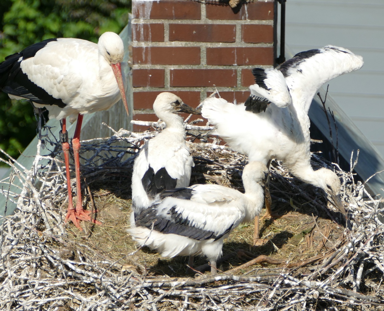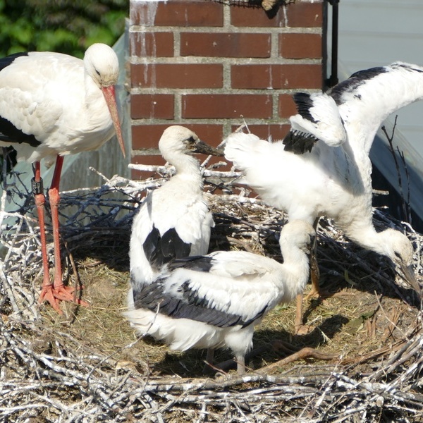 Auch dieses Jahr durfte sich Denzlingen wieder über erfolgreichen Storchennachwuchs freuen: Sechs Jungstörche waren bis in die erste Augusthälfte auf dem Denzlinger Storchenturm beheimatet. Die Störche machten sich nun auf den Weg in Richtung Süden, um dort zu überwintern. Auch auf zahlreichen Strommasten südlich von Denzlingen wurden in den vergangenen Wochen Störche gesichtet. Diese befanden sich in ihren letzten Vorbereitungen für den Fernflug.Zuletzt war es interessierten Beobachtern möglich, das Geschehen in den Storchennestern über Kameras live mitzuverfolgen. Bürgermeister Hollemann spricht hierfür seinen herzlichen Dank an die „Storchenväter“ Manfred Wössner und Hans-Peter Rieder aus. Wössner und Rieder leiteten in bewährter Manier die Planung und Ausführung dieser Aktion. Störche haben eine Flügelspannweite von ca. 2 Metern. Diese ermöglicht es ihnen, täglich bis zu 400 km zurückzulegen.