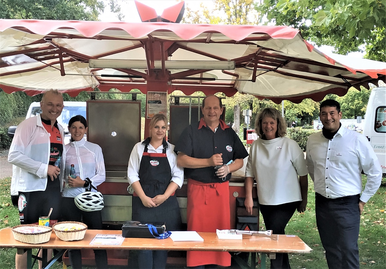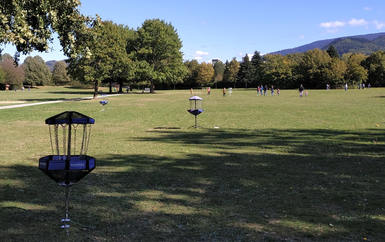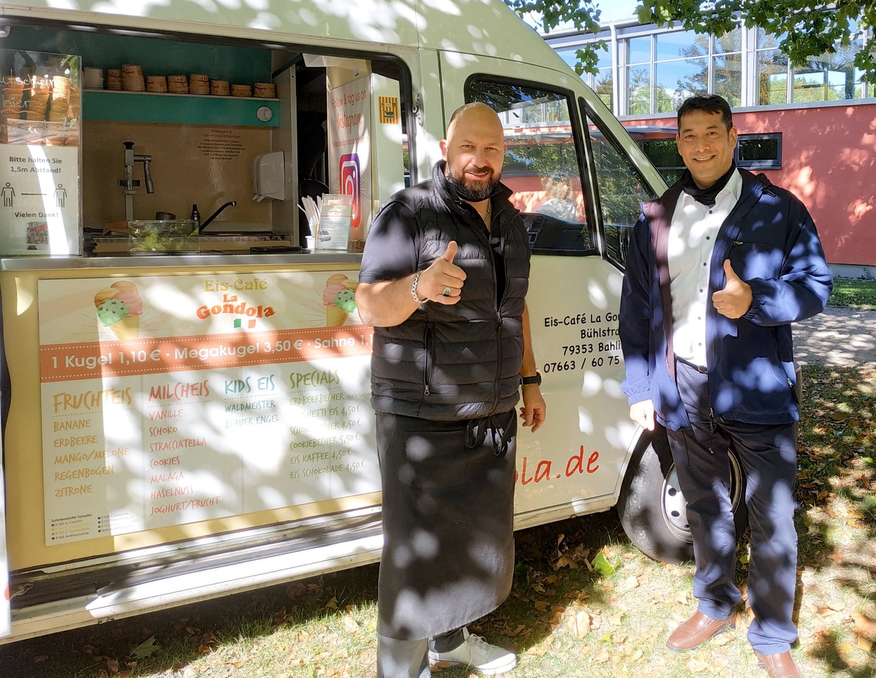 Bei herrlichem Herbstwetter war angerichtet: Bänke, Getränke, Eiswagen und ein Imbiss-Stand der Metzgerei Linder. Eingeladen hatte Bürgermeister Markus Hollemann Freiwillige, die seit Beginn der Corona-Pandemie für andere Denzlinger im Einsatz waren.25 Ehrenamtliche, teils mit Familien, haben die Danksagung der Gemeinde angenommen. Sie lachten viel und unterhielten sich angeregt, stets mit Corona-Abstand. Die Gäste fühlten sich sichtbar wohl. Zudem konnte die Sportart Discgolf ausprobiert werden.