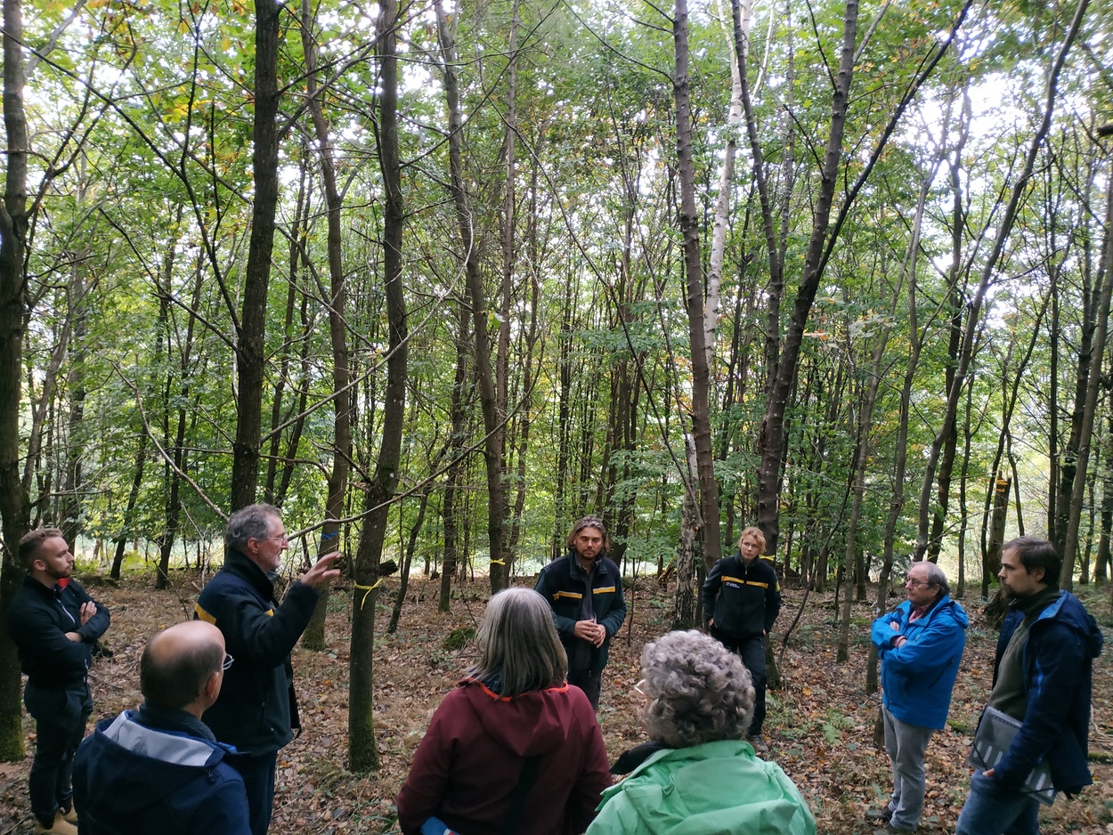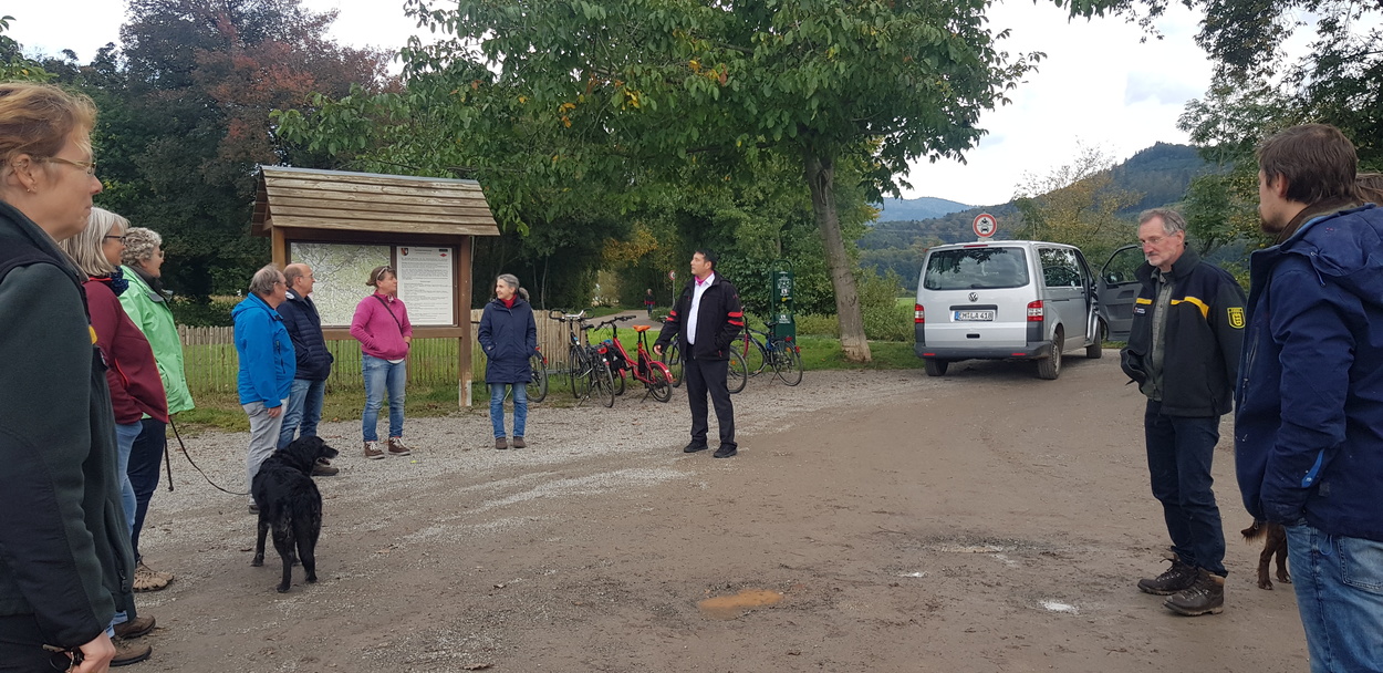 Zahlreiche Vertreter des Denzlinger Gemeinderates und Bürgermeister Markus Hollemann besuchten am 13.10.2020 den Denzlinger Gemeindewald. Der Leiter des Forstamtes Emmendingen Dr. Martin Schreiner, der Denzlinger Forstrevierleiter Bernd Nold, der für die Planung der neuen Forsteinrichtung zuständige Andre Eickmann sowie Dr. Lisa Thomas machten die Gruppe auf den Zustand und die Entwicklungsstufen des größtenteils Mischwaldes bei mehreren Halten aufmerksam. Ein besonderes Augenmerk galt der großen Artenvielfalt. Die Herausforderung der Klimakrise und die Erderhitzung bedingen nun einen klimastabilen Umbau des Waldes in den kommenden Jahrzehnten.