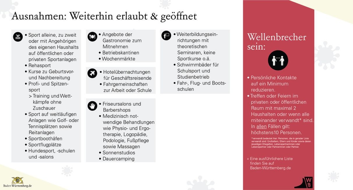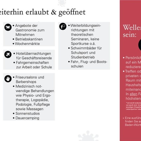 Mit Beschluss vom 1. November 2020 hat die Landesregierung ihre Rechtsverordnung über infektionsschützende Maßnahmen gegen die Ausbreitung des Coronavirus (Corona-Verordnung) erneut geändert. Die Änderungen treten am 2. November 2020 in Kraft.