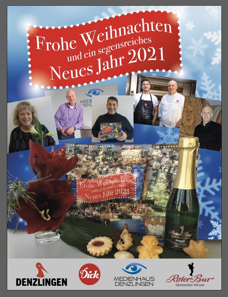 In den letzten Jahren feierte Bürgermeister Markus Hollemann an Heiligabend mit Denzlingern, die den Weihnachtsabend nicht alleine verbringen wollten im Kultur & Bürgerhaus. „Leider können wir uns dieses Jahr nicht treffen“, so der Bürgermeister. „Wir erinnern uns gerne an den funkelnden, mit Strohsternen und roten Äpfeln dekorierten Weihnachtsbaum und die beleuchtete Weihnachtskrippe. Die glanzvoll gedeckten Tische für das traditionelle Heiligabendessen, die gemeinsam gesungenen Weihnachtslieder“ bedauert er im Blick auf die diesjährige Absage der Weihnachtsveranstaltung. Dazu ergänzt Sabine Haupenthal von der Anlauf-, Informations- und Vermittlungsstelle (A I V): „Auch, wenn wir uns dieses Jahr nicht im Kultur & Bürgerhaus sehen und uns keine Hände reichen dürfen, so sind wir in liebevollen Gedanken zusammen. Als Zeichen der Zuneigung und zur Erinnerung an die vorangegangenen Heiligabende überbringen die ehrenamtlichen Helferinnen und Helfer unterstützt von ausgewählten Sponsoren den Denzlinger Heiligabend-Gästen der vergangenen Jahre ein kleines Weihnachtsgeschenk.“Die Gemeinde Denzlingen dankt folgenden Sponsoren: Patrick Dirr – Medienhaus Denzlingen, Udo Opel – Roter Bur Glottertal, Michael und Christian Dick – Handwerksbäckerei Dick.