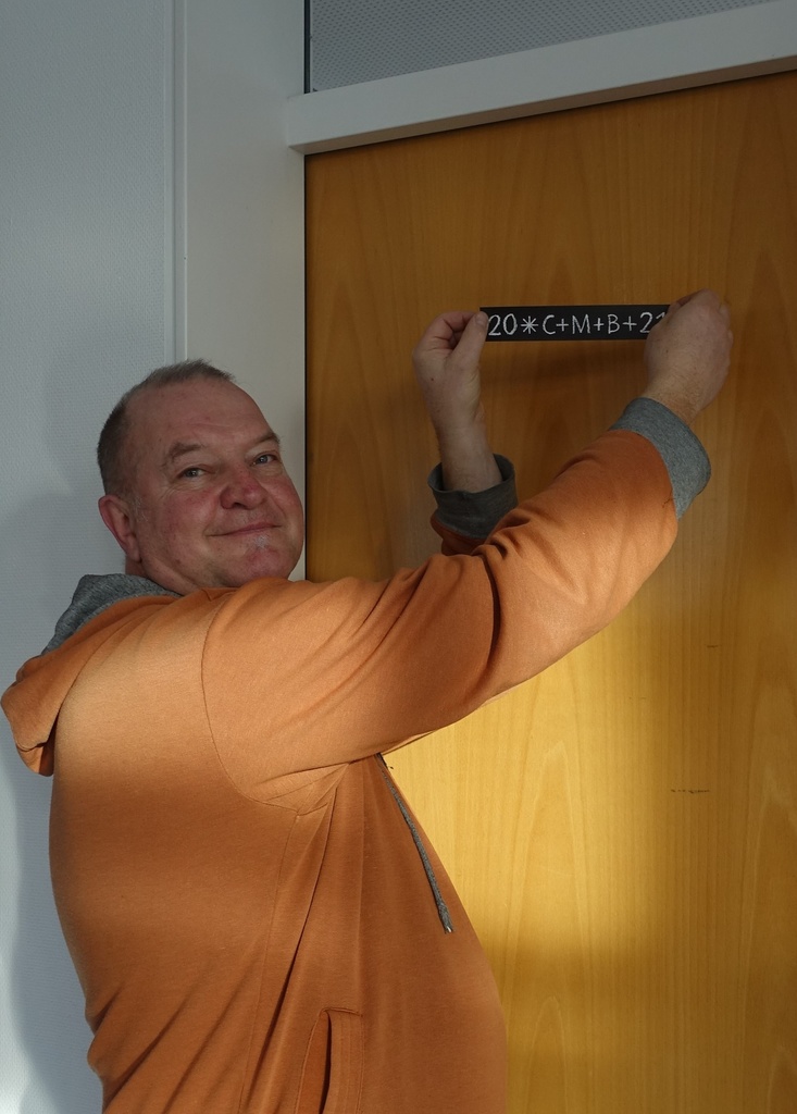 Rund um den Jahreswechsel sind normalerweise die Sternsinger unterwegs, um den Segen zu den Menschen und in die Häuser zu bringen und Spenden für Kinder in Not zu sammeln. Aufgrund der Corona-Pandemie ist das in 2021 leider nicht möglich. Darum legte beim Denzlinger Rathaus Hausmeister Bernd Hegenauer Hand an Türen und Eingangstüren. „Er vertritt dieses Jahr die Sternsinger“, so Bürgermeister Markus Hollemann, der hofft „dass der Segen der Sternsinger auch in diesem Jahr, in einer anderen Form zu allen Menschen kommt und gerade in dieser schwierigen Zeit Kraft und Lichtblicke gibt!“Die Aktion Dreikönigssingen wurde somit in diesem Jahr kontaktlos aber kreativ umgestaltet.