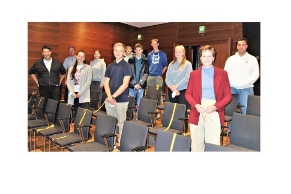 Aber zehn sind ja schon eine ordentliche Truppe, die was auf die Beine stellen kann. Je mehr andere „wichtige“ Leute überzeugt werden können, desto größer die Chance, dass was geht. Das wusste auch Nicole Stadnik. Die war die letzten beiden Jahre Jugendgemeinderätin und verriet: „Man muss interagieren, netzwerken, dranbleiben.“ Mit ihren Kollegen Ben C. Falk und Joshua Drüssel wurde sie von Bürgermeister Hollemann und Jugendpfleger Frank Adler verabschiedet (die übrigen sieben Ex-JGR’ler hatten nicht kommen können) und leistete nochmal einen Freundschaftsdienst: Zählte mit Joshua zusammen die Stimmzettel aus für die Karriereposten, die die neuen zehn unter sich durch geheime Wahl vergaben: Sprecherin Lara Eckerle, Stellvertreter Jakob Kandziorra, Schriftführerin Julie Nübling, Presseverantwortliche Katja Hohe, Kassenwart Ben Strubel und Kassenprüferin Sonja Beckert. Außerdem im Team dabei sind Krisztián Hajdú, Daniel Hofstetter, Sahin Özel und Fynn Stadelbauer.