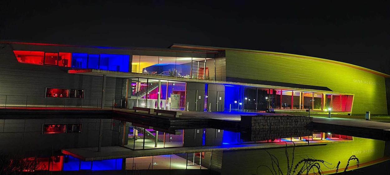 Fotos der Illumination des Kultur & Bürgerhauses am 3. März 2022Ein herzliches Dankeschön geht an den Initiator der Illumination Bernd Läuger (Veranstaltung/Technik Kultur & Bürgerhaus Denzlingen).