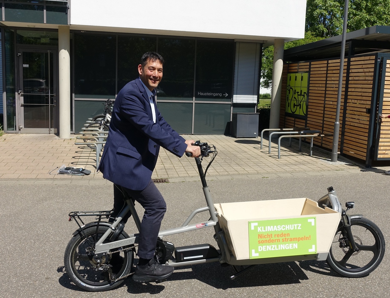 „Klimaschutz Denzlingen - strampeln statt reden“. Wer dieses Schild in Denzlingen sieht, hat „Gunnar“ erblickt – das erste E-Lastenrad in Denzlingen, das kostenlos ausgeliehen werden kann. Lastenräder sind vielseitig einsetzbare Transportmittel für größere Einkäufe, Grünschnitt, Umzüge oder Sperrmüll. Ebenso eignen sie sich hervorragend für den Familienausflug zum Baden oder in die Natur. Sie leisten einen Beitrag zur Verkehrsberuhigung und machen Spaß.Bei Gunnar handelt es sich um ein zweirädriges E-Cargobike der Marke Johansson, das in einem neu errichteten Solarcarport am Rathaus-Hintereingang in Denzlingen seinen festen Stellplatz hat. Die Gemeinde Denzlingen hat Gunnar angeschafft, um den Denzlinger Bürgerinnen und Bürgern eine einfache Alternative zu innerörtlichen Fahrten mit dem PKW anzubieten. Denzlingens Bürgermeister Markus Hollemann hofft auf rege Nutzung des neuen Angebots: „Nahezu 2/3 all unserer Autofahrten haben den Start- und Zielort innerhalb der Gemeindegemarkung. Wieso nicht mal das Auto stehen lassen und Gunnar kostenfrei Probe fahren oder regelmäßig nutzen?“